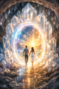 Binnenin de aarde stappen we een groot Lemurisch kristal binnen, dat een portaal is. En terwijl we door het portaal stappen, stappen we onze nieuwe realiteit binnen. Begeleid door de energieën van het nieuwe jaar 2026. We stappen de trilling van ons nieuwe zelf binnen, zoals we werkelijk zijn. En terwijl we hier binnen dit portaal staan, kunnen we voelen hoe onze energie verandert en zich opmaakt voor hogere frequenties. En het licht in onszelf wordt sterker.